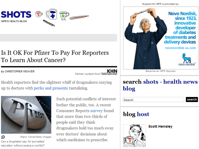 Une histoire agite un peu les milieux de la presse en ce moment: Pfizer va financer un colloque destiné à former les journalistes médicaux en cancérologie.