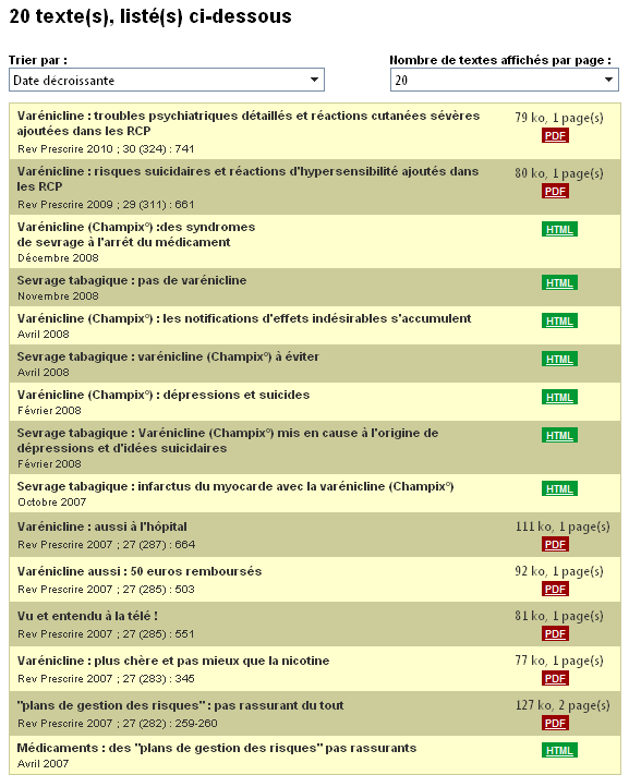 Vous noterez que Prescrire a pointé très précocement les problèmes neuro psychiatriques liés à la varénicline.