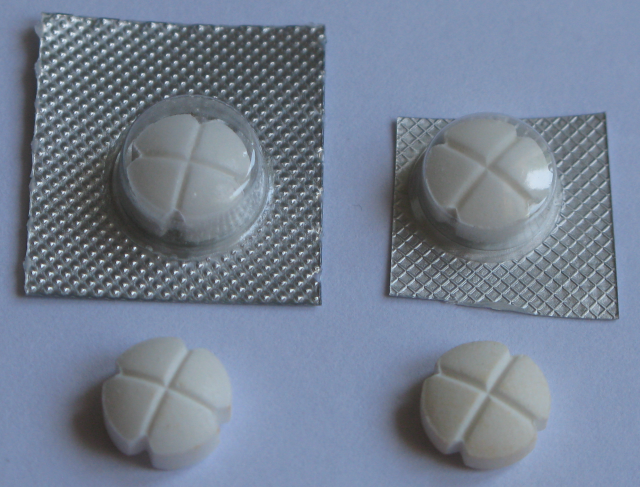 J’ai mis les photos des blisters, car c’est ainsi que doivent être administrés les médicaments en établissement de santé. Et comme vous pouvez le constater, contrairement aux conditionnements de nombreux autre médicaments, aucun signe ne peut permettre à l’infirmière de distinguer un comprimé d’un autre.