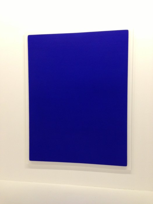 La vibration produite par ce bleu est tout à fait incroyable. Je comprends mieux la notion de persistance rétinienne dans l’œuvre de Klein. Aucune reproduction ne peut rendre cela (une illustration caricaturale ici). Il faut le voir pour le croire.