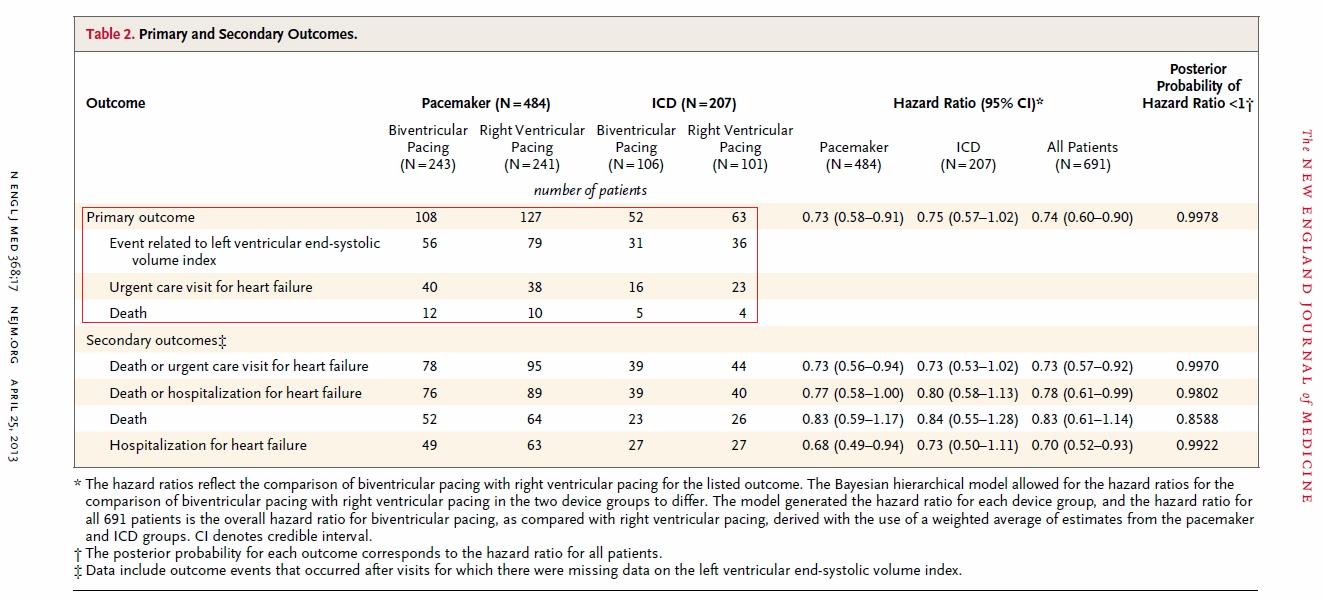Curtis AB, Worley SJ, Adamson PB, Chung ES, Niazi I, Sherfesee L, Shinn T, Sutton MS; Biventricular versus Right Ventricular Pacing in Heart Failure Patients with Atrioventricular Block (BLOCK HF) Trial Investigators. Biventricular pacing for atrioventricular block and systolic dysfunction. N Engl J Med. 2013 Apr 25;368(17):1585-93. doi: 10.1056/NEJMoa1210356.
