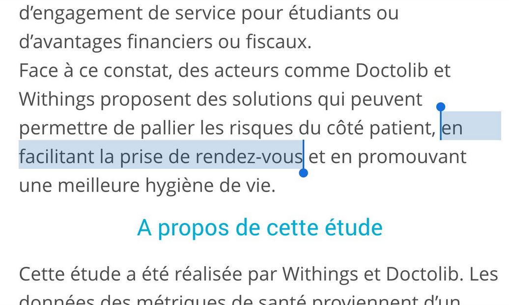 L’idée de cette note m’a été donnée par l’étude Doctolib/Withings sur les déserts médicaux qui a été pas mal reprise par la presse début juillet. Pour résumer, cette étude a comparé (plutôt mis côte à côte) le temps d’attente pour obtenir un rendez-vous médical (délai qui serait diminué par l’utilisation de Doctolib) et des données biométriques collectées par Withings (leur suivi serait censé améliorer la morbi-mortalité).