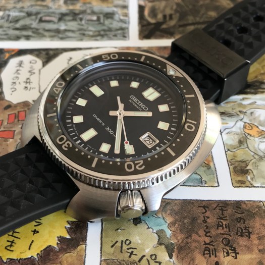 Je reprends la plume pour faire une petite revue, surtout pour donner mes premières impressions, sur une montre. Il s’agit d’une Seiko, la SLA033 ou SLA033J1 qui est une ré-édition d’une montre de plongée des années 70, la 6105.