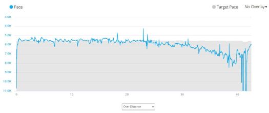 D’un point de vue course, j’ai commencé à souffrir au km 24, et 42.195-24, ça fait beaucoup. Les derniers km ont à la fois été horribles et très agréables pour une autre raison.