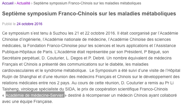 Après une période bien compréhensible de profil bas, Servier arrose de nouveau large manu de ses bienfaits ceux qui veulent bien faire partie de ses ouailles (avec l’Académie de Médecine au premier rang, purement honorifique):