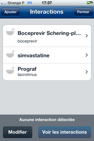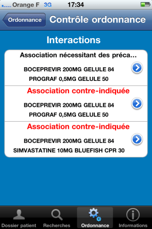 Par contre, je dirais Work in Progress car l’application n’est pour l’instant pas fiable du fait de bugs et surtout de lacunes au niveau de la recherche des interactions médicamenteuses: