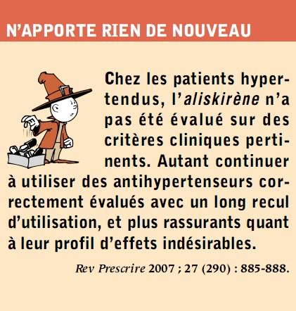 - Le Collège National des Cardiologues des Hôpitaux Généraux devait bien y croire, lui aussi, puisqu’il consacrait à l’aliskiren cette page dans son « organe d’expression », en septembre 2010.