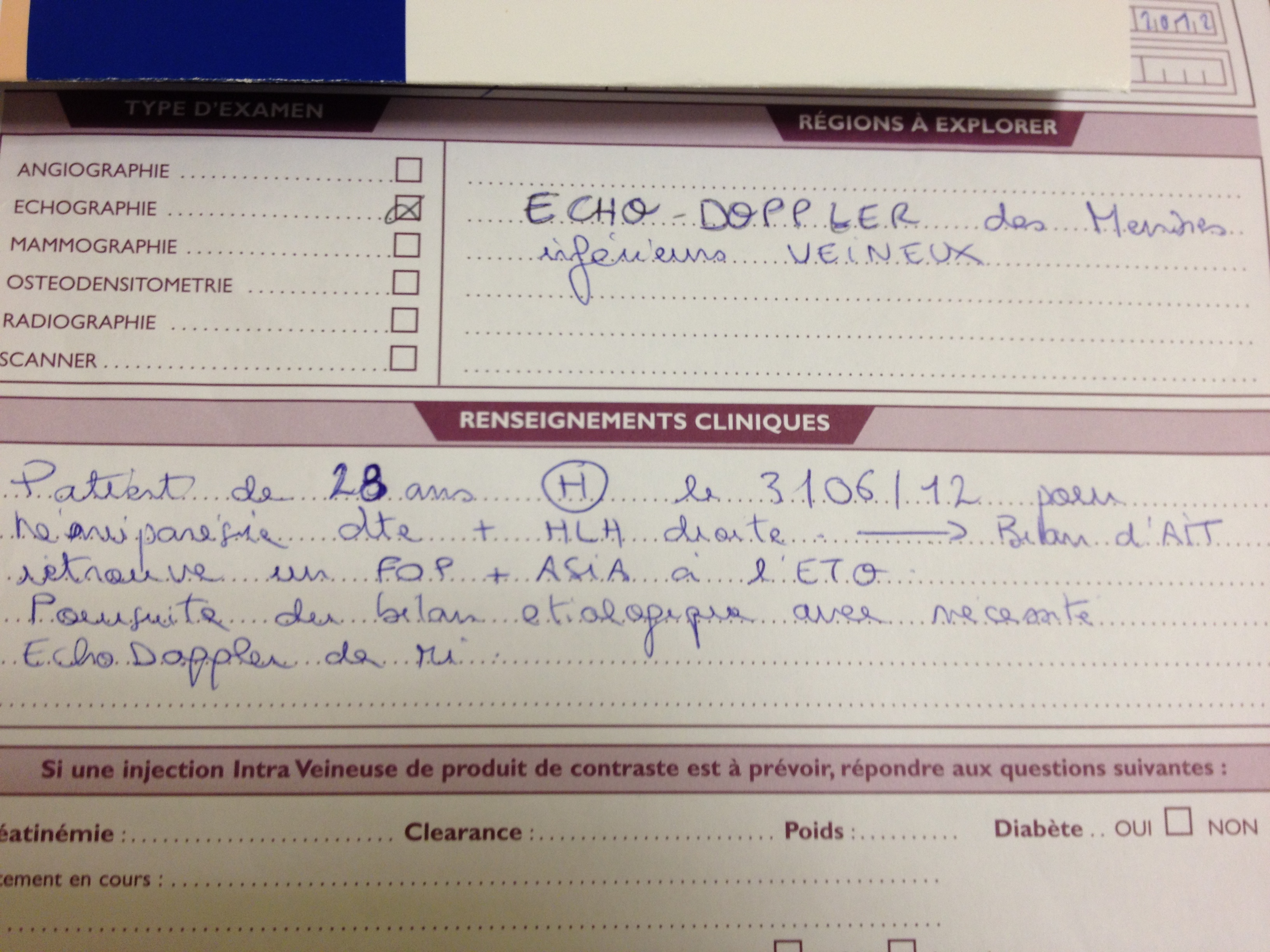 J’ai encore vu passer aujourd’hui un patient déambulant, sans traitement anticoagulant, adressé par les neurologues pour une recherche de thrombose veineuse profonde pouvant expliquer une embolie paradoxale responsable d’un accident vasculaire cérébral récent.