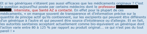 Un argument des adversaires des génériques souligne que l’aspect du générique peut troubler les patients. Mais je pense qu’un peu de pédagogie peut le plus souvent améliorer les choses.