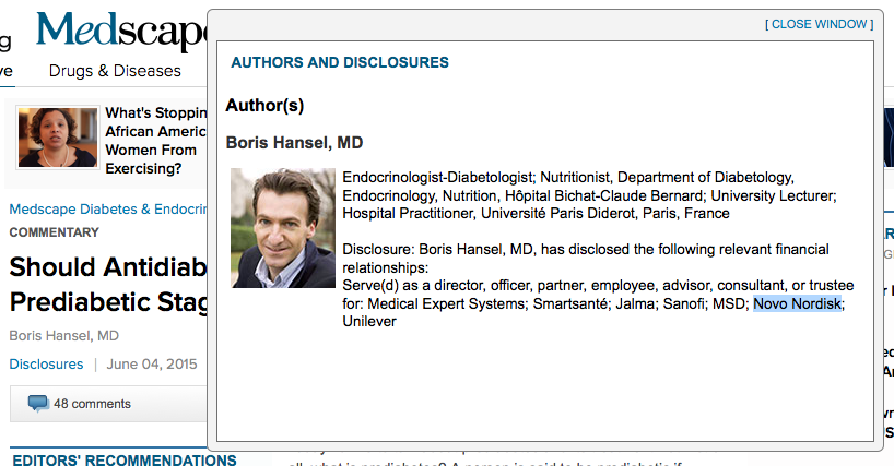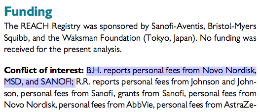 L’article « Stratégie thérapeutique dans le diabète de type 2. Les critères de choix d’une bithérapie« , daté du 16/10/08, c’est à dire exactement 7 jours avant le retrait de l’AMM du rimonabant est aussi tout à fait étonnant, puisqu’il cite ce produit comme une alternative thérapeutique dans le diabète de type 2 [note de l’auteur, ce qui est soit dit en passant une indication hors AMM] sans faire la moindre mention aux effets secondaires, ni aux mesures de pharmacovigilance mises en place par les autorités sanitaires: