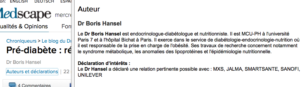 Au décours de la lecture du texte de Carnets de Santé, j’ai parcouru l’article de UFC-Que choisir qui critiquait sans trop détailler le traitement de la courte carrière du rimonabant par le vénérable Quotidien du Médecin.